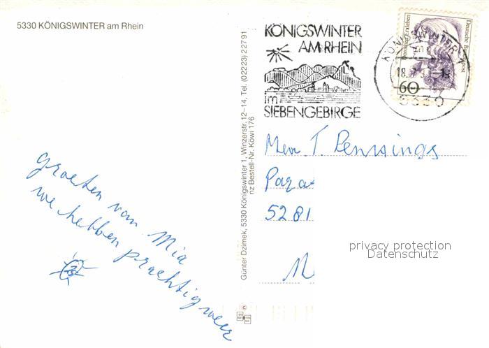 72845307 alte Postkarte Koenigswinter Faehre Schloss postalisch gelaufen Erhaltung siehe scans [NatalD47] KatCode: 11110005382024
