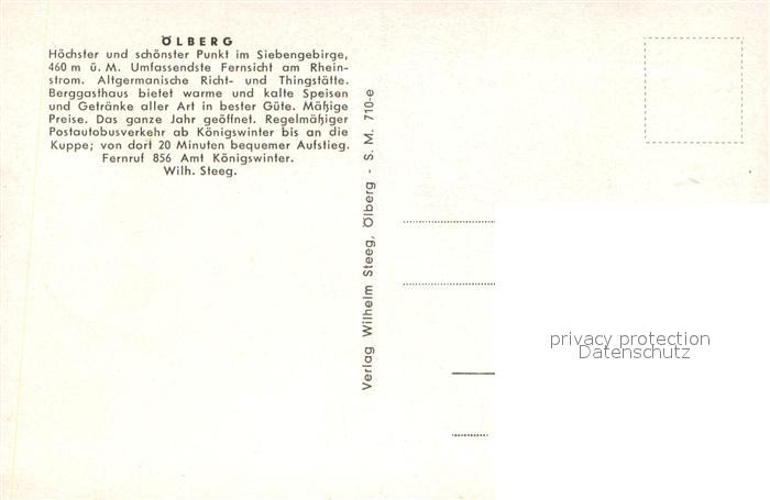 73712299 Koenigswinter Felspartie und Berggasthaus auf der Kuppe des oelberges postalisch nicht gelaufen Erhaltung siehe scans [WerneD78] KatCode: 11110005382024