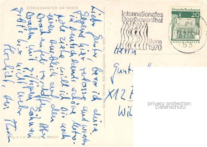 73657145 alte Postkarte Koenigswinter Fliegeraufnahme postalisch gelaufen Erhaltung siehe scans [FriedD77] KatCode: 11110005382024