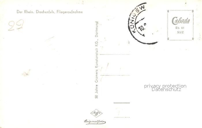 73295740 alte Postkarte Koenigswinter Fliegeraufnahme Drachenfels postalisch gelaufen Erhaltung siehe scans [NatalD47] KatCode: 11110005382024