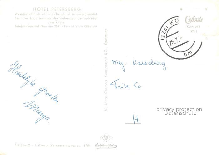 73098431 alte Postkarte Koenigswinter Fliegeraufnahme Hotel Petersberg postalisch gelaufen Erhaltung siehe scans [KathaD81] KatCode: 11110005382024