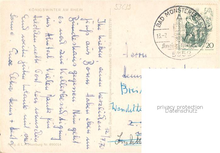 73686816 alte Postkarte Koenigswinter Fliegeraufnahme postalisch gelaufen Erhaltung siehe scans [WerneD78] KatCode: 11110005382024