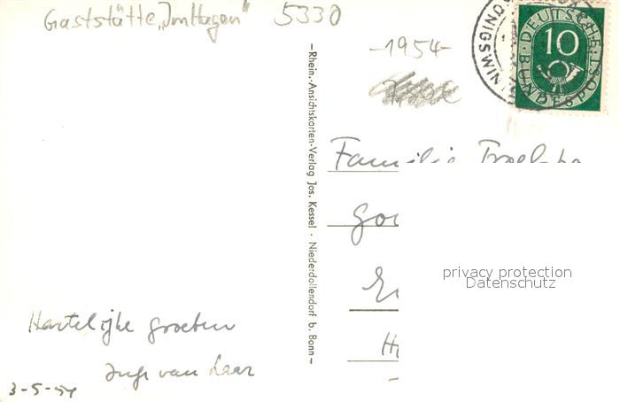 73689796 alte Postkarte Koenigswinter Gaststaette Im Hagen Margarethenhoehe im Siebengebirge postalisch gelaufen Erhaltung siehe scans [FriedD77] KatCode: 11110005382024