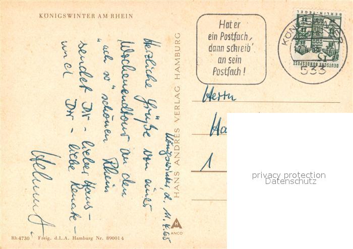 73744032 alte Postkarte Koenigswinter Gesamtansicht m. Rhein postalisch gelaufen Erhaltung siehe scans [LiesaD40] KatCode: 11110005382024