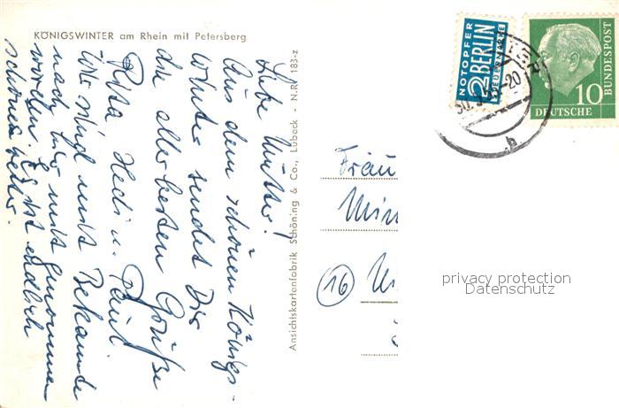 72992423 alte Postkarte Koenigswinter Gesamtansicht Petersberg postalisch gelaufen Erhaltung siehe scans [AndreD76] KatCode: 11110005382024