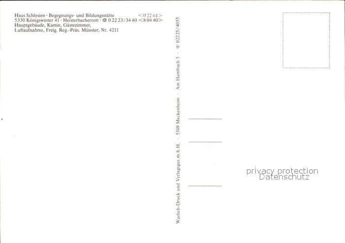 72226830 Koenigswinter Haus Schlesien Fliegeraufnahme postalisch nicht gelaufen Erhaltung siehe scans KatCode: 11110005382024
