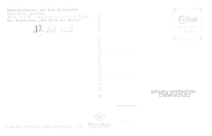73021497 Koenigswinter Hotel auf dem Drachenfels mit Ruine Drachenfels Fliegeraufnahme postalisch nicht gelaufen Erhaltung siehe scans [WerneD78] KatCode: 11110005382024