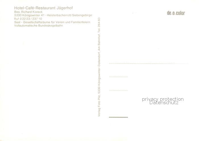 73845238 Koenigswinter Hotel Cafe Restaurant Jaegerhof Panorama Gastraum postalisch nicht gelaufen Erhaltung siehe scans [WerneD78] KatCode: 11110005382024