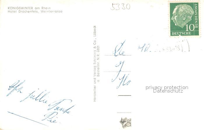 73689904 alte Postkarte Koenigswinter Hotel Drachenfels Weinterrasse Panorama Rheintal postalisch gelaufen Erhaltung siehe scans [FriedD77] KatCode: 11110005382024