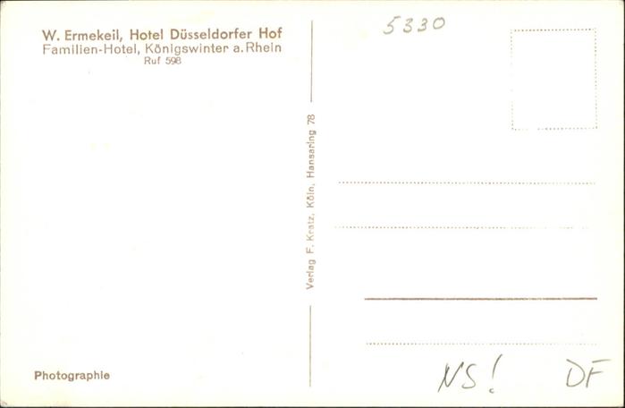 40955151 Koenigswinter Hotel Duesseldorfer Hof Weingrosshandlung NZ4 postalisch nicht gelaufen Alte Ansichtskarte Postkarte Katcode 11110005382024