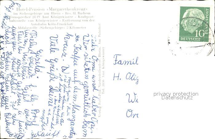 72095356 alte Postkarte Koenigswinter Hotel Pension Margarethenkreuz im Siebengebirge postalisch gelaufen Erhaltung siehe scans KatCode: 11110005382024