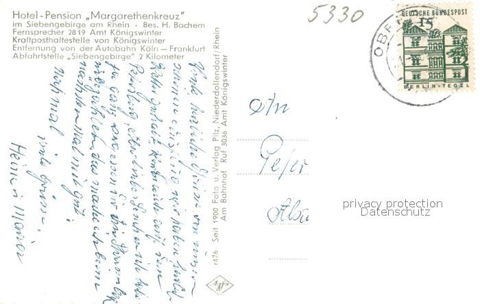 73689797 alte Postkarte Koenigswinter Hotel Pension Margarethenkreuz im Siebengebirge postalisch gelaufen Erhaltung siehe scans [FriedD77] KatCode: 11110005382024