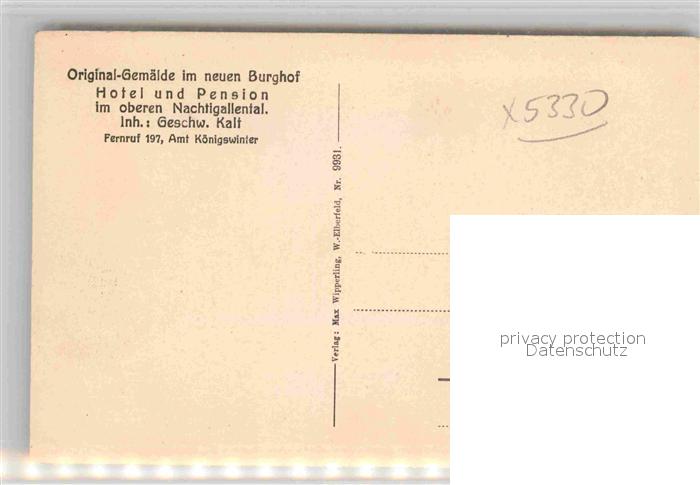 42891404 Koenigswinter Hotel Pension Nachtigallental neuer Burghof Originalgemaelde postalisch nicht gelaufen Erhaltung siehe scans [KathaD81] KatCode: 11110005382024
