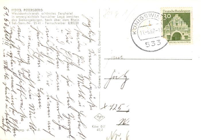 73883611 alte Postkarte Koenigswinter Hotel Petersberg Fliegeraufnahme postalisch gelaufen Erhaltung siehe scans [WerneD78] KatCode: 11110005382024