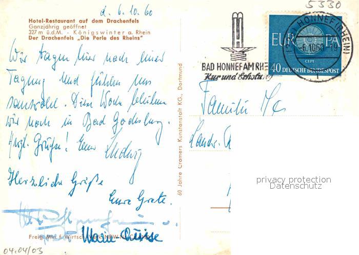 72912312 alte Postkarte Koenigswinter Hotel Restaurant auf dem Drachenfels Fliegeraufnahme postalisch gelaufen Erhaltung siehe scans [FriedD77] KatCode: 11110005382024