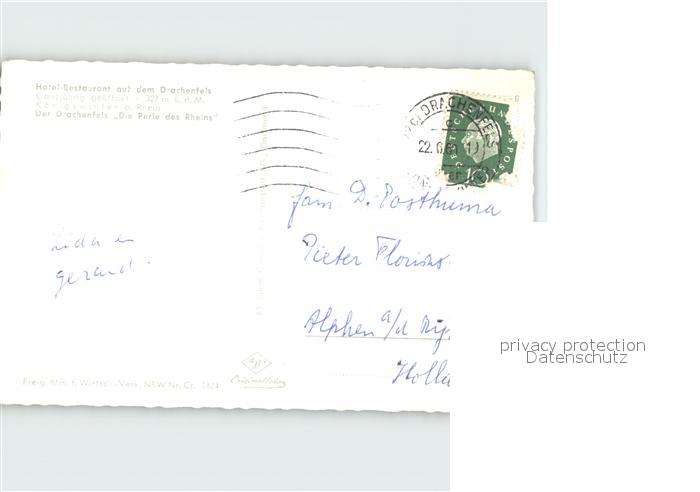 72077146 alte Postkarte Koenigswinter Hotel Restaurant auf dem Drachenfels Fliegeraufnahme postalisch gelaufen Erhaltung siehe scans KatCode: 11110005382024