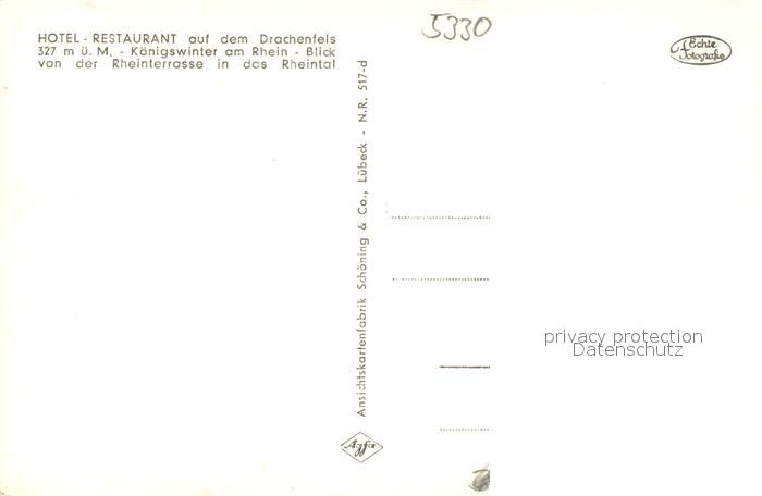 73689916 Koenigswinter Hotel Restaurant auf dem Drachenfels Rheinterrasse Blick ins Rheintal postalisch nicht gelaufen Erhaltung siehe scans [FriedD77] KatCode: 11110005382024