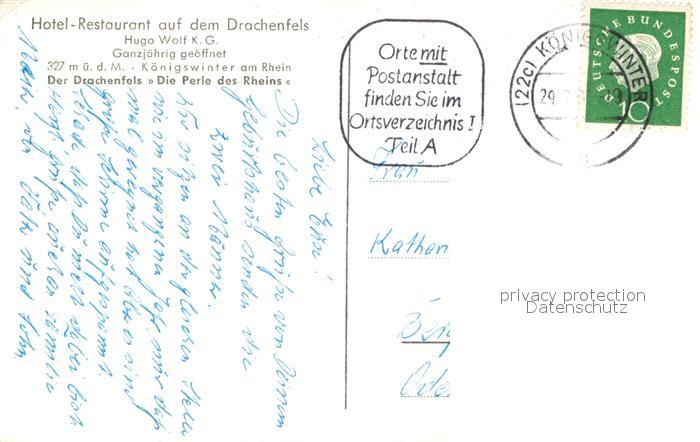 72991623 alte Postkarte Koenigswinter Hotel Restaurant auf dem Drachenfels postalisch gelaufen Erhaltung siehe scans [AndreD76] KatCode: 11110005382024