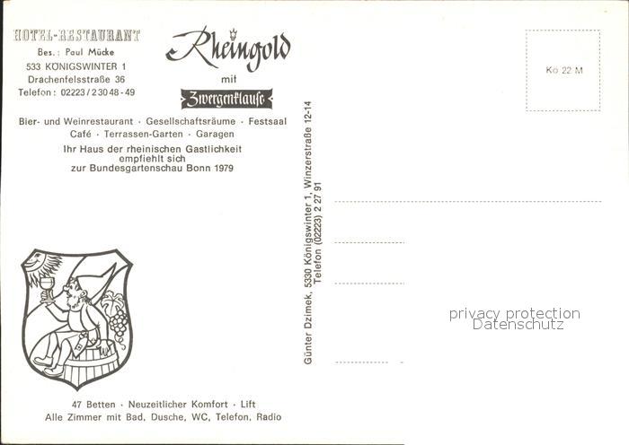 72246323 Koenigswinter Hotel Restaurant Rheingold postalisch nicht gelaufen Erhaltung siehe scans KatCode: 11110005382024