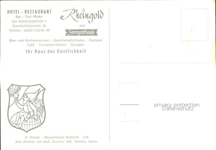 72205679 Koenigswinter Hotel Restaurant Rheingold Pferdekutsche postalisch nicht gelaufen Erhaltung siehe scans KatCode: 11110005382024