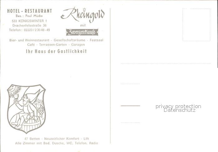 72270828 Koenigswinter Hotel Restaurant Rheingold Pferdekutsche postalisch nicht gelaufen Erhaltung siehe scans KatCode: 11110005382024