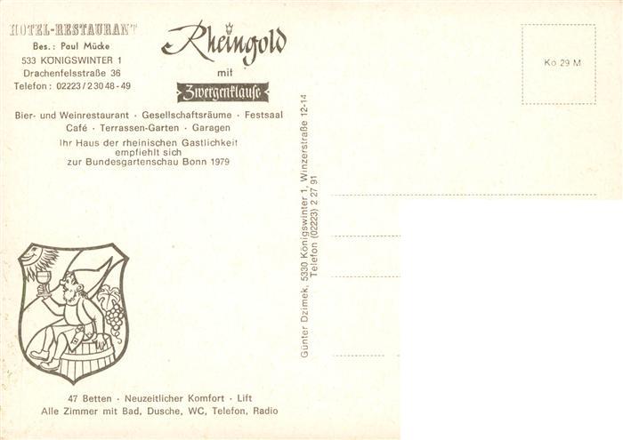 73924900 Koenigswinter Hotel Restaurant Rheingold postalisch nicht gelaufen Erhaltung siehe scans [FriedD77] KatCode: 11110005382024