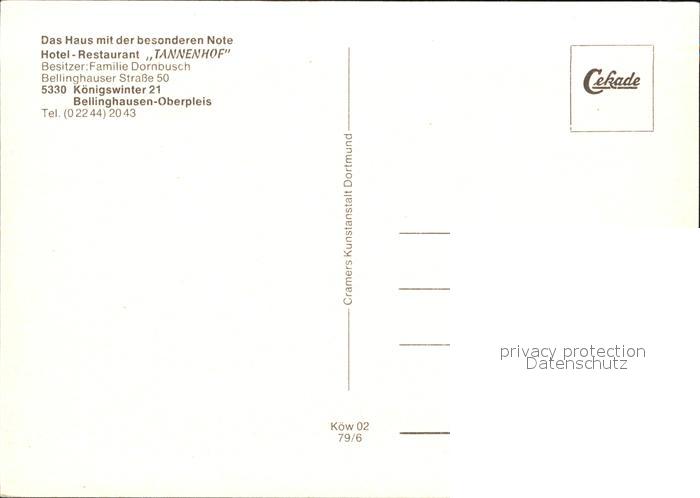 72469976 Koenigswinter Hotel Restaurant Tannenhof postalisch nicht gelaufen Erhaltung siehe scans KatCode: 11110005382024