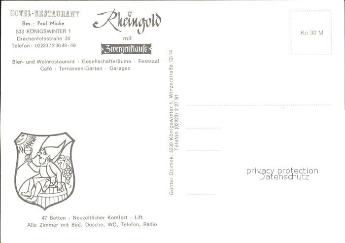 72298902 Koenigswinter Hotel Rheingold Kutsche postalisch nicht gelaufen Erhaltung siehe scans KatCode: 11110005382024
