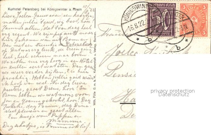 72098246 alte Postkarte Koenigswinter Kurhotel Petersberg Kuenstlerkarte postalisch gelaufen Erhaltung siehe scans KatCode: 11110005382024