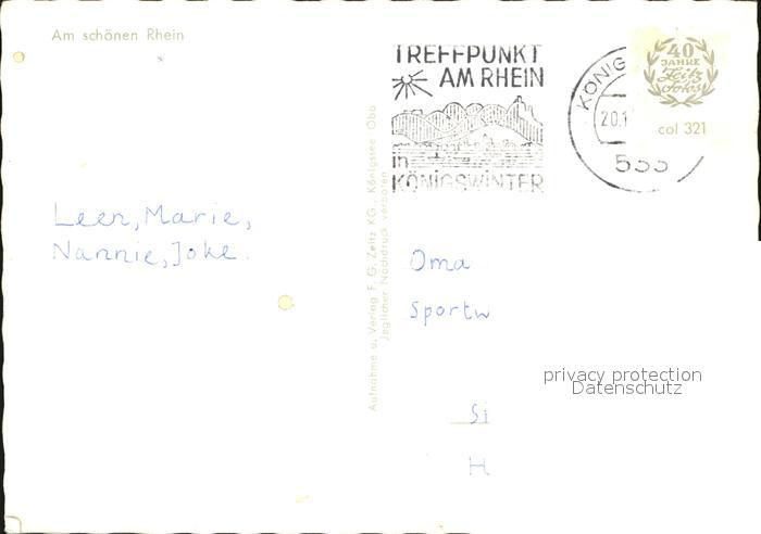 72443547 alte Postkarte Koenigswinter mit Drachenfels und Burg postalisch gelaufen Erhaltung siehe scans KatCode: 11110005382024
