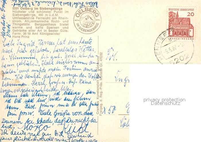 73167181 alte Postkarte Koenigswinter oelberg im Siebengebirge Fliegeraufnahme postalisch gelaufen Erhaltung siehe scans [FriedD77] KatCode: 11110005382024