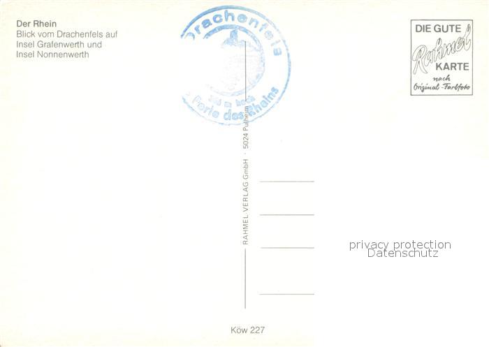 73629400 Koenigswinter Panorama Blick vom Drachenfels Insel Grafenwerth Insel Nonnenwerth Rhein postalisch nicht gelaufen Erhaltung siehe scans [FriedD77] KatCode: 11110005382024