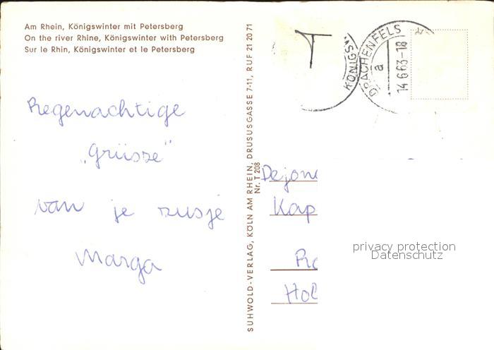 72405076 alte Postkarte Koenigswinter Partie am Rhein mit Petersberg Dampfer postalisch gelaufen Erhaltung siehe scans KatCode: 11110005382024