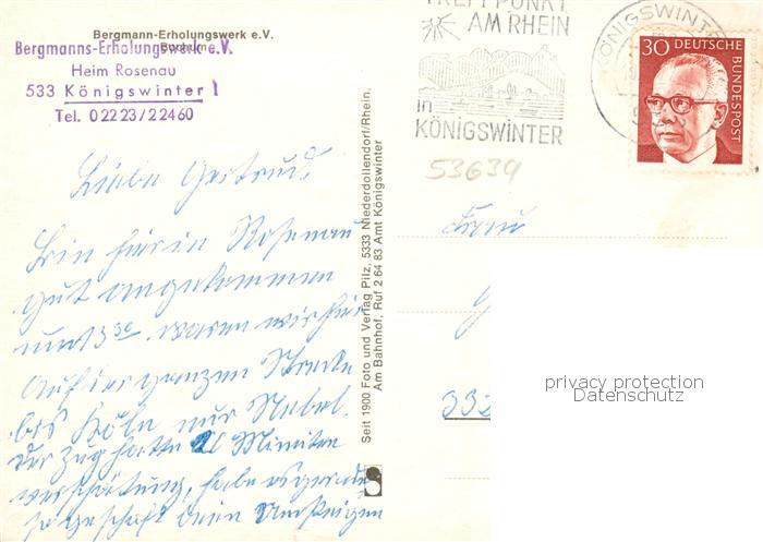 73865679 Koenigswinter Rhein Bergmanns-Erholungswerk e.V. Heim Rosenau postalisch gelaufen Erhaltung siehe scans [FriedD77] alte Postkarte Frie Katcode 11110005382024