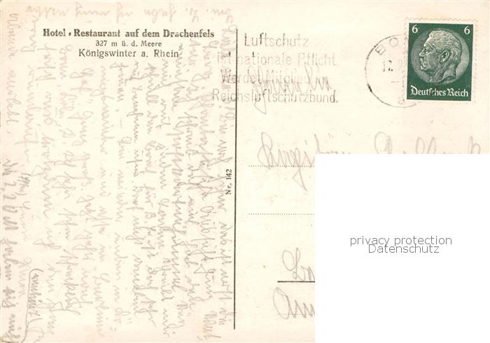 73801150 Koenigswinter Rhein Blick auf Drachenburg Koenigswinter und Rheintal postalisch gelaufen Erhaltung siehe scans [WerneD78] alte Postkarte Wern Katcode 11110005382024