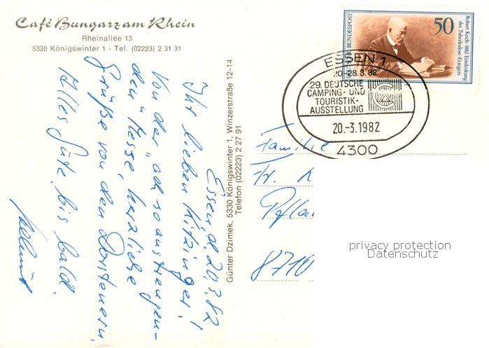 73866696 Koenigswinter Rhein Cafe Konditorei Bungarz Gastraeume Terrasse Ruine Drachenfels postalisch gelaufen Erhaltung siehe scans [WerneD78] alte Postkarte Wern Katcode 11110005382024