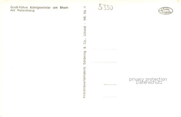 73689505 Koenigswinter Rhein Grossfaehre mit Blick zum Petersberg postalisch nicht gelaufen Erhaltung siehe scans [FriedD77] KatCode: 11110005382024