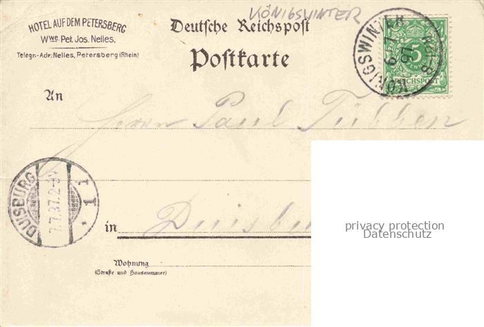 74066169 alte Postkarte Koenigswinter Rhein Hotel auf dem Petersberg Kuenstlerkarte Deutsche Reichspost postalisch gelaufen Erhaltung siehe scans [FriedD77] KatCode: 11110005382024