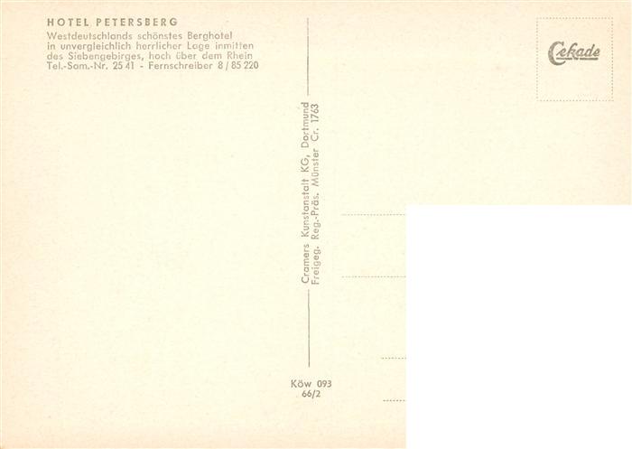 73916617 Koenigswinter Rhein Hotel Petersberg Fliegeraufnahme postalisch nicht gelaufen Erhaltung siehe scans [WerneD78] Wern Katcode 11110005382024