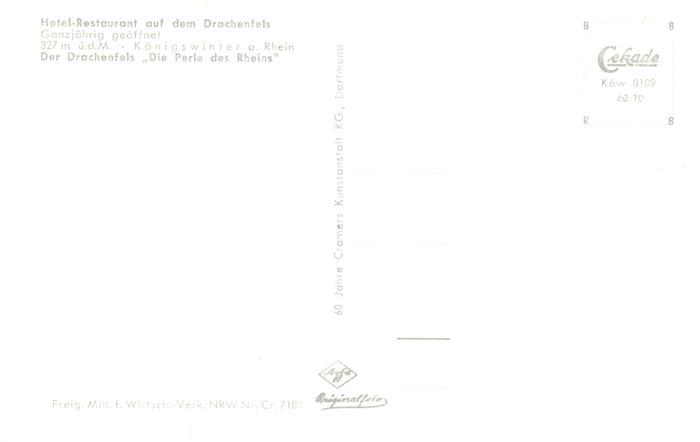 73907343 Koenigswinter Rhein Hotel Restaurant auf dem Drachenfels Fliegeraufnahme postalisch nicht gelaufen Erhaltung siehe scans [WerneD78] Wern Katcode 11110005382024