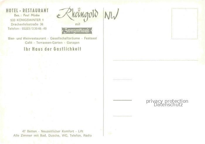 74087371 Koenigswinter Rhein Hotel Restaurant Rheingold Gastraeume postalisch nicht gelaufen Erhaltung siehe scans [WerneD78] KatCode: 11110005382024