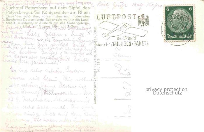 74150453 alte Postkarte Koenigswinter Rhein Kurhotel Petersberg Ausblick von der Terrasse postalisch gelaufen Erhaltung siehe scans [FriedD77] KatCode: 11110005382024