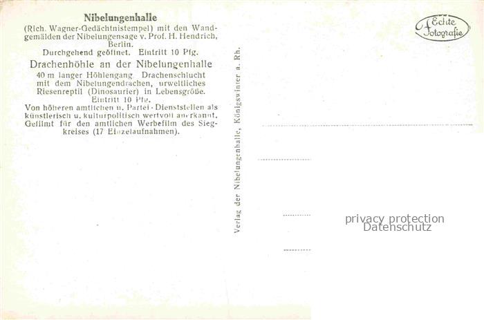 74150454 Koenigswinter Rhein Nibelungenhalle Richard-Wagner-Gedaechtnistempel Drachenfels postalisch nicht gelaufen Erhaltung siehe scans [FriedD77] KatCode: 11110005382024