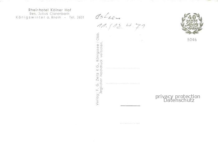 74154224 Koenigswinter Rhein Rheinhotel Koelner Hof Anleger Fahrgastschiff Ansicht vom Wasser aus postalisch nicht gelaufen Erhaltung siehe scans [FriedD77] KatCode: 11110005382024