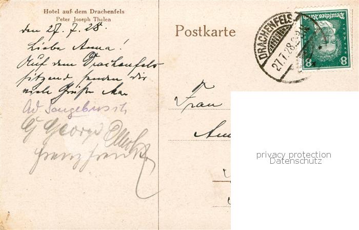 73810462 Koenigswinter Rhein Ruine Drachenfels Rheinpartie postalisch gelaufen Erhaltung siehe scans [WerneD78] alte Postkarte Wern Katcode 11110005382024