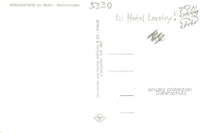 73689503 Koenigswinter Rheinanlagen Bootsanleger Hotel Loreley postalisch nicht gelaufen Erhaltung siehe scans [FriedD77] KatCode: 11110005382024