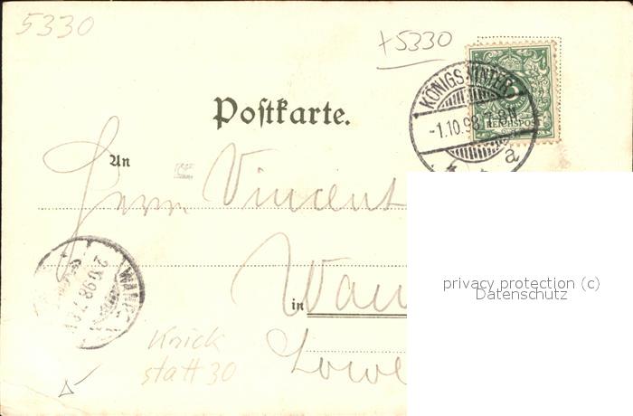 41512713 alte Postkarte Koenigswinter Rheinpanorama Drachenburg Ruine Drachenfels Restauration Zahnradbahn Wolfgang Mueller Denkmal postalisch gelaufen Erhaltung siehe scans KatCode: 11110005382024