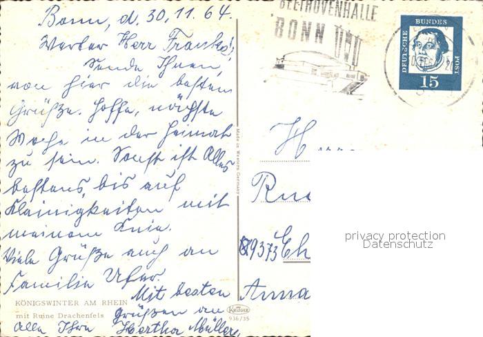 72448559 alte Postkarte Koenigswinter Rheinpartie mit Ruine Drachenfels postalisch gelaufen Erhaltung siehe scans KatCode: 11110005382024