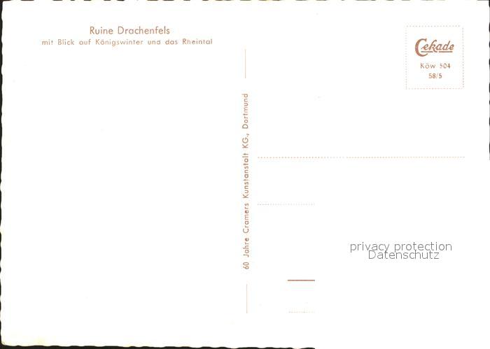72280747 Koenigswinter Ruine Drachenfels Rheintal Fliegeraufnahme postalisch nicht gelaufen Erhaltung siehe scans KatCode: 11110005382024