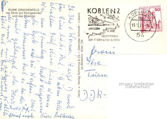 73030573 alte Postkarte Koenigswinter Ruine Drachenfels Rheintal postalisch gelaufen Erhaltung siehe scans [KathaD81] KatCode: 11110005382024